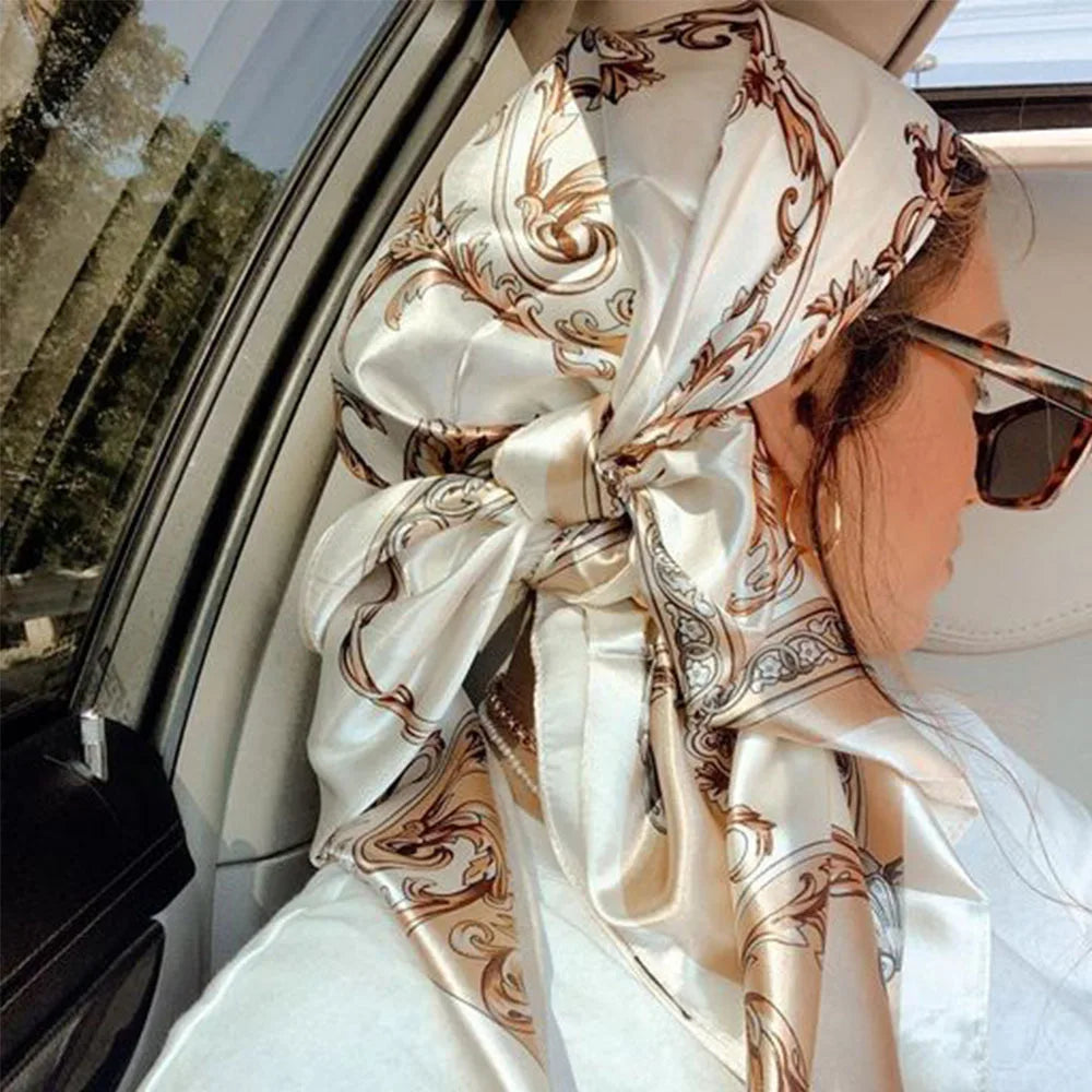 Silk Head Scarf Women Luxury Fashion Hair Scarve Summer Foulard Femme Satin Shawl Kerchief 90cm Square Headscarf Bandana Cheveux